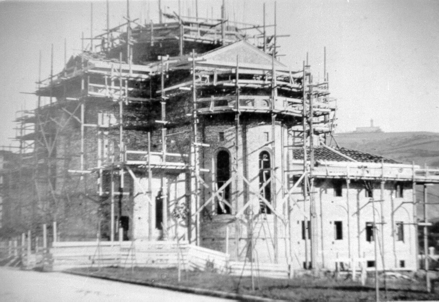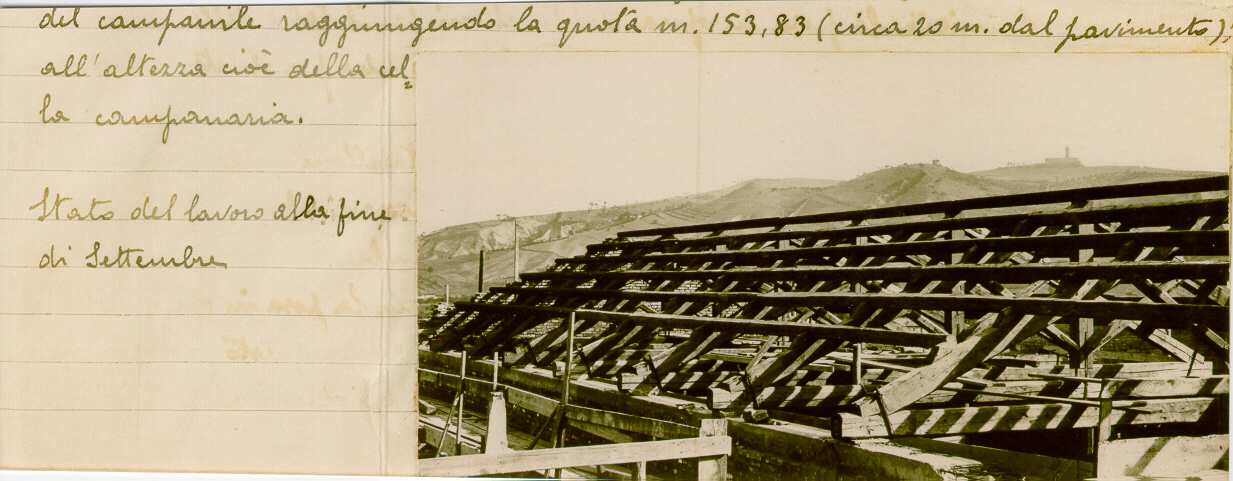 I tre anni di tempo in cui venne realizzata la costruzione videro la presenza assidua di Cesare Bazzani, impegnato a Forlì con altri grossi cantieri e dello stesso Benito Mussolini che non lesinava consigli e correttivi; lo stesso Papa Pio XI, informato costantemente dal progettista sull’andamento dei lavori, suggerì i tre motti da incidere sul campanile.