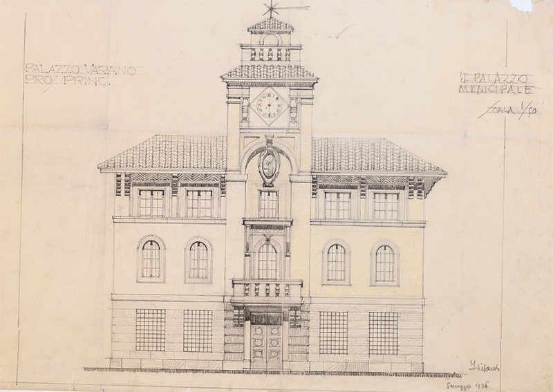 Per la nuova sede comunale venne scelto un caseggiato denominato Varano, posto su di una collinetta, all’incrocio della strada provinciale con quella che porta al nucleo antico di Predappio.